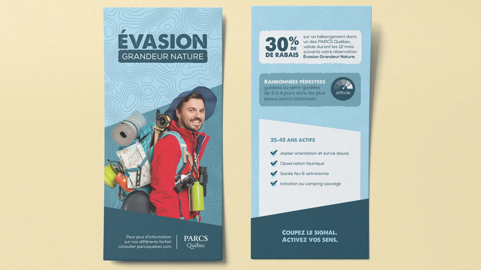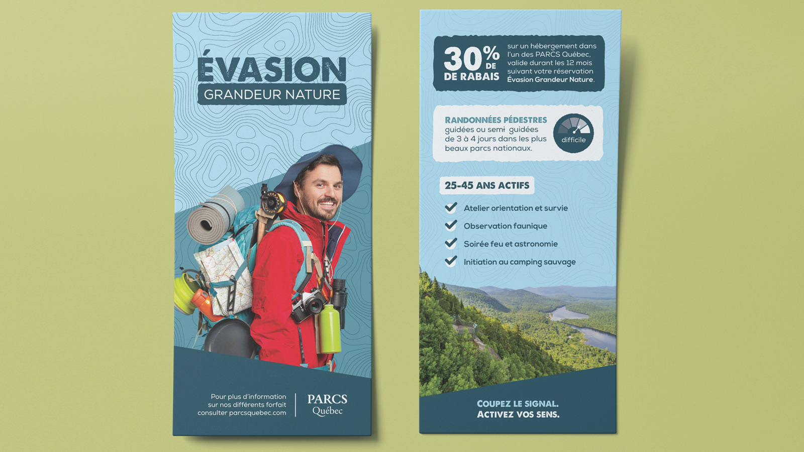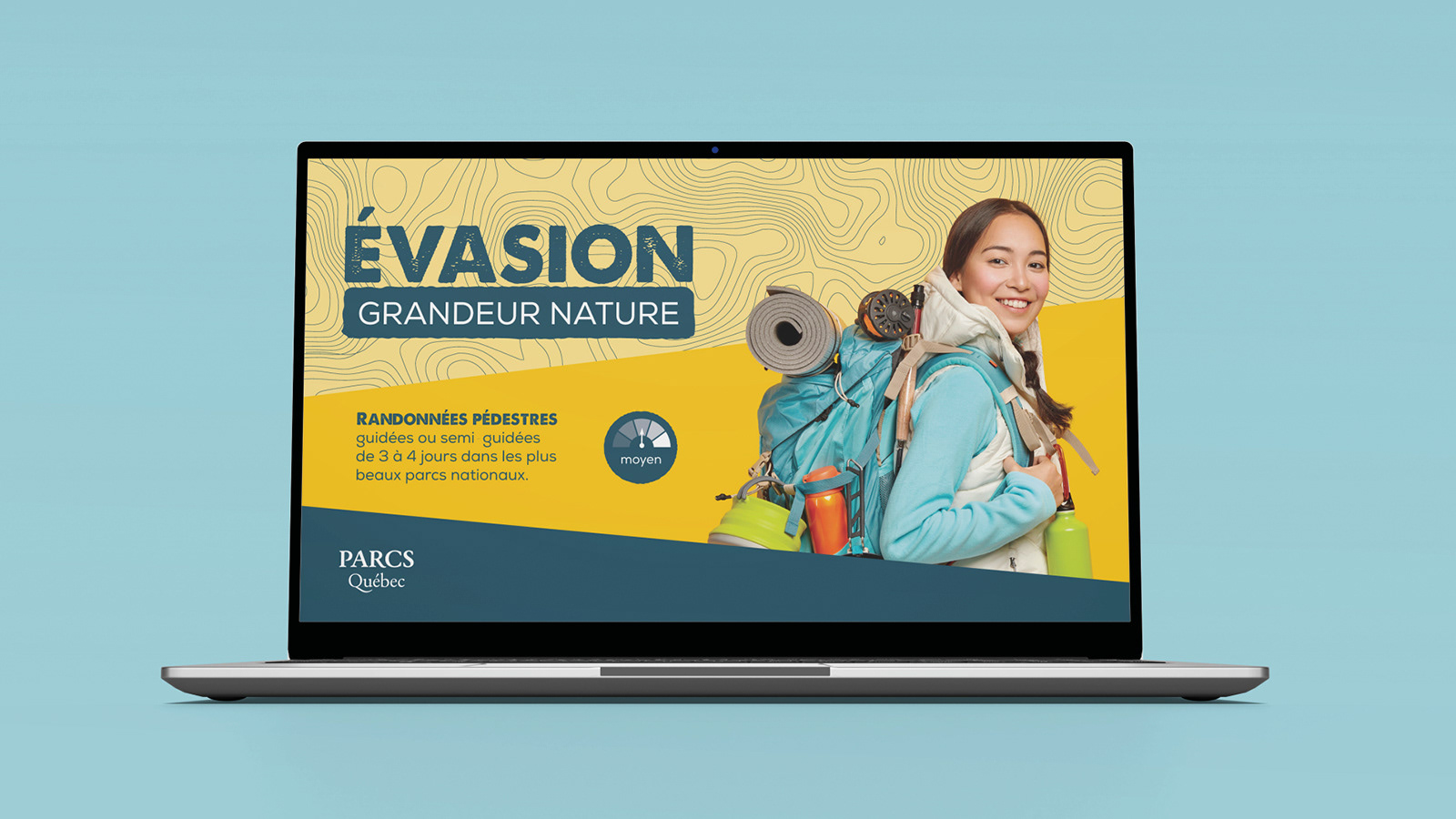 Voici un projet personnel à travers lequel j’ai souhaité mettre de l’avant mon amour du plein air. Ce concept vise à promouvoir les longues randonnées guidées dans les parcs nationaux du Québec.